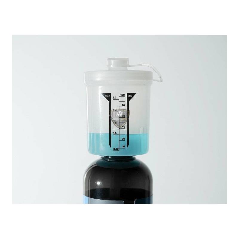 Idéalement pensé, ce mesureur se visse sur le goulot de la bouteille à la place du bouchon d'origine du produit. Il est compatible avec toutes les bouteilles possédant un goulot de 28mm, soit l'ensemble des bouteilles en 500ml et 1L chez CarPro.